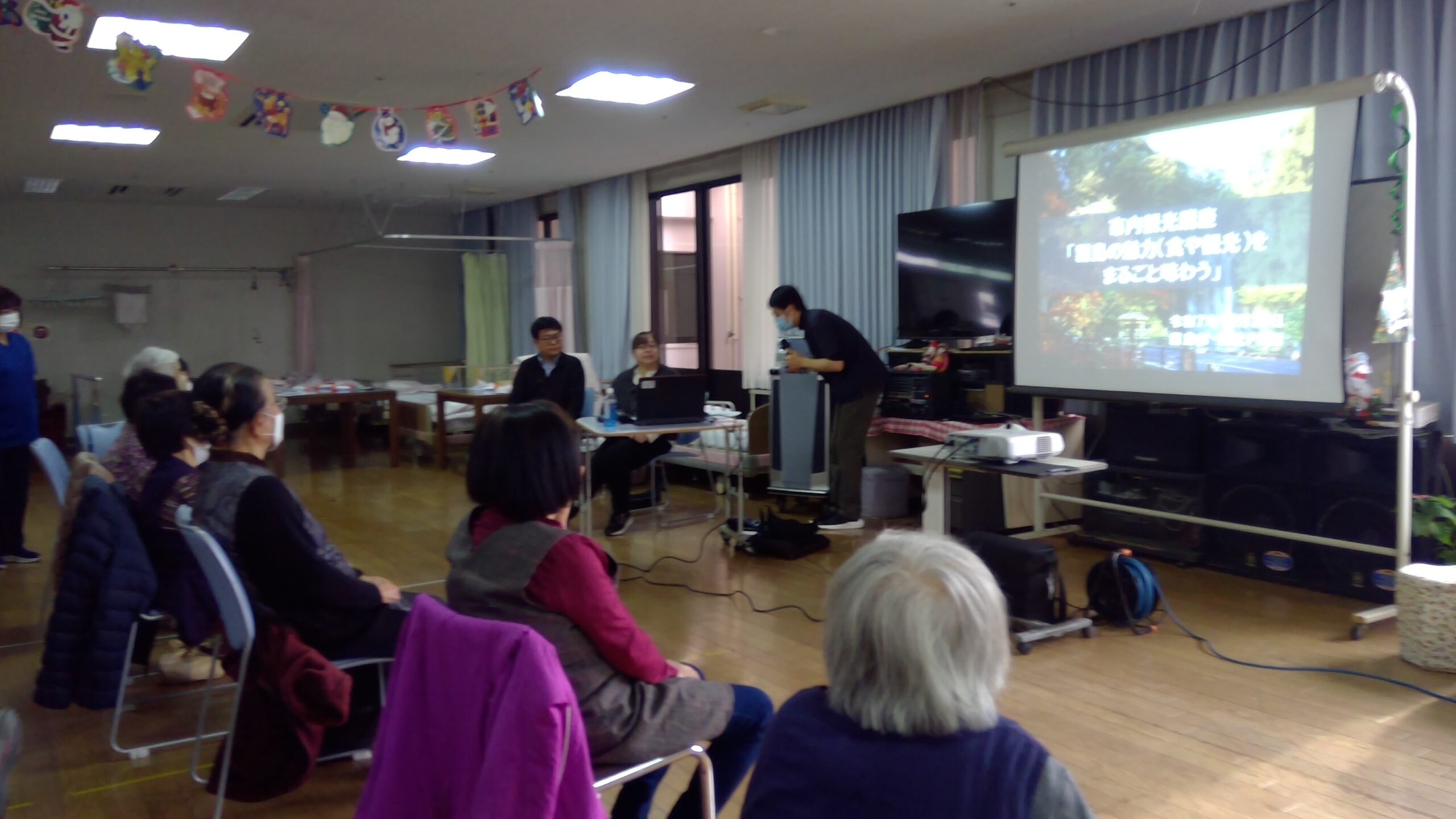 令和7年12月20日、月例の地域のひろばが老健きりしまのホールにて行われ、14名の方にご参加いただきました。
