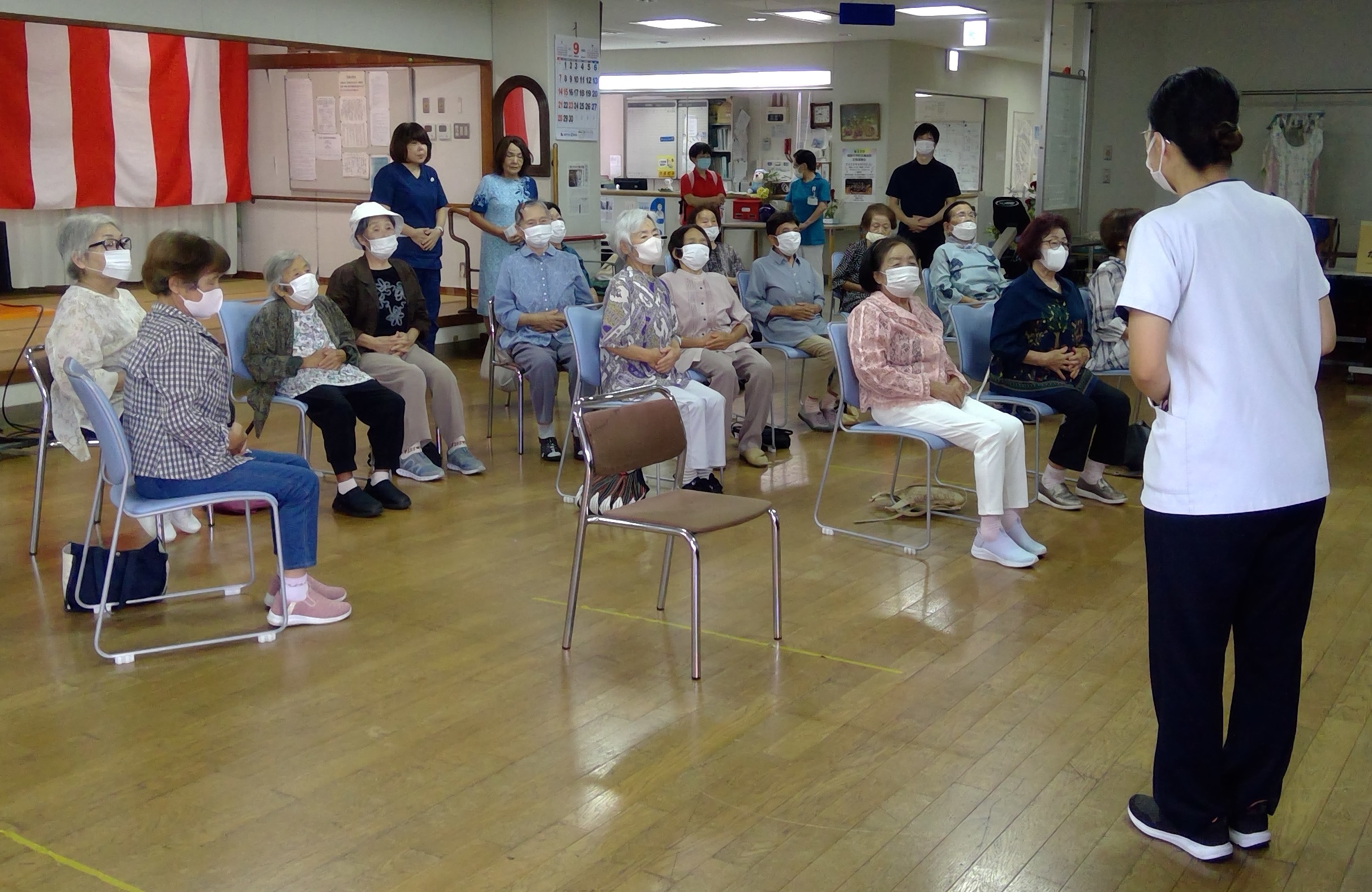 令和7年9月20日、月例の地域のひろばが老健きりしまのホールにて行われ、今回は15名の方にご参加いただきました。