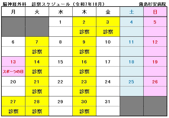 (令和7年10月)脳神経外科 診察スケジュールについて